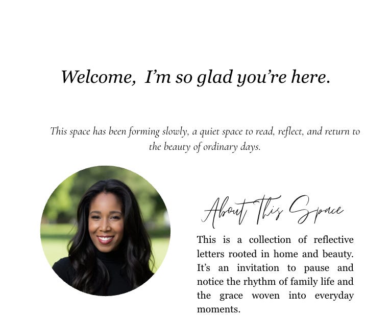 If you find joy in the little things, like soft morning light, a handwritten note, or a table set with intention, I hope you’ll feel at home here. You’re warmly welcome.